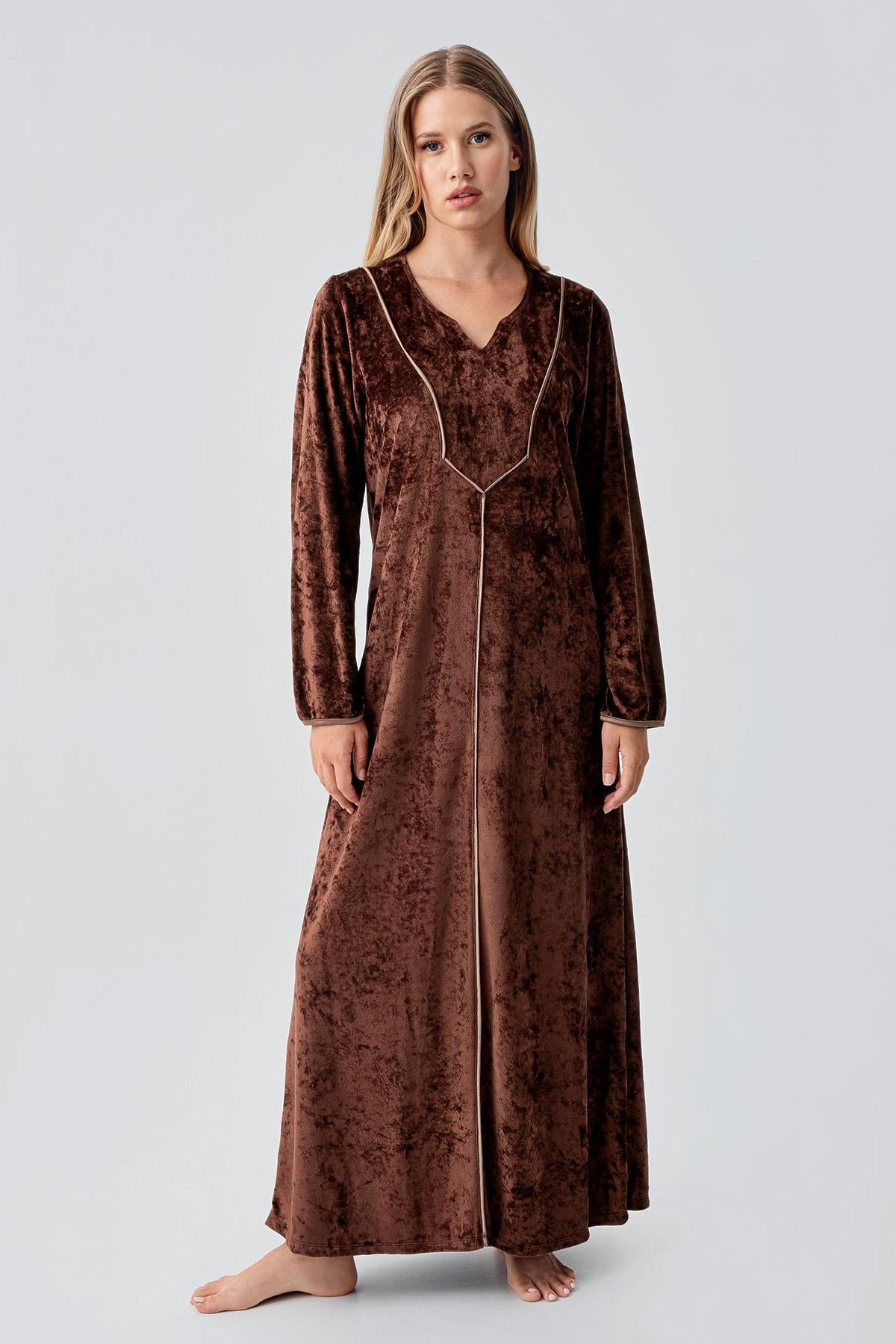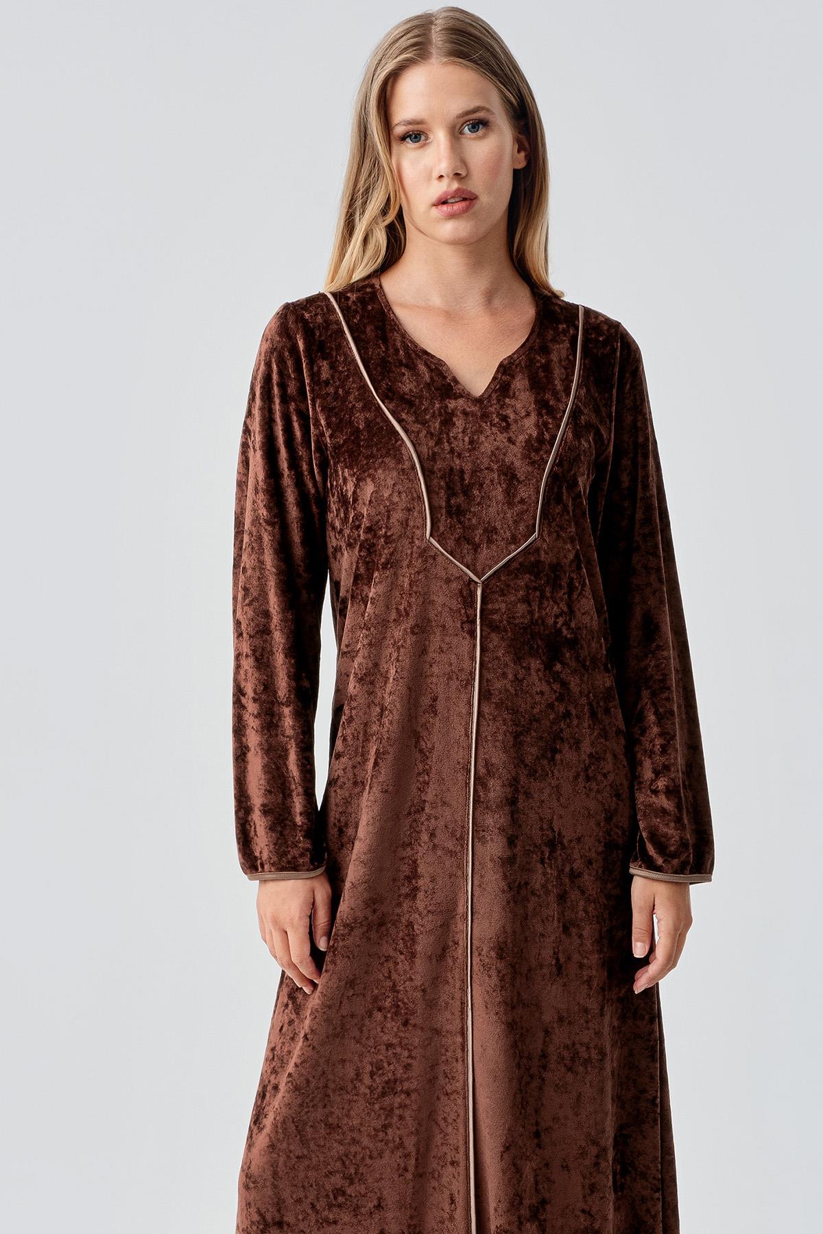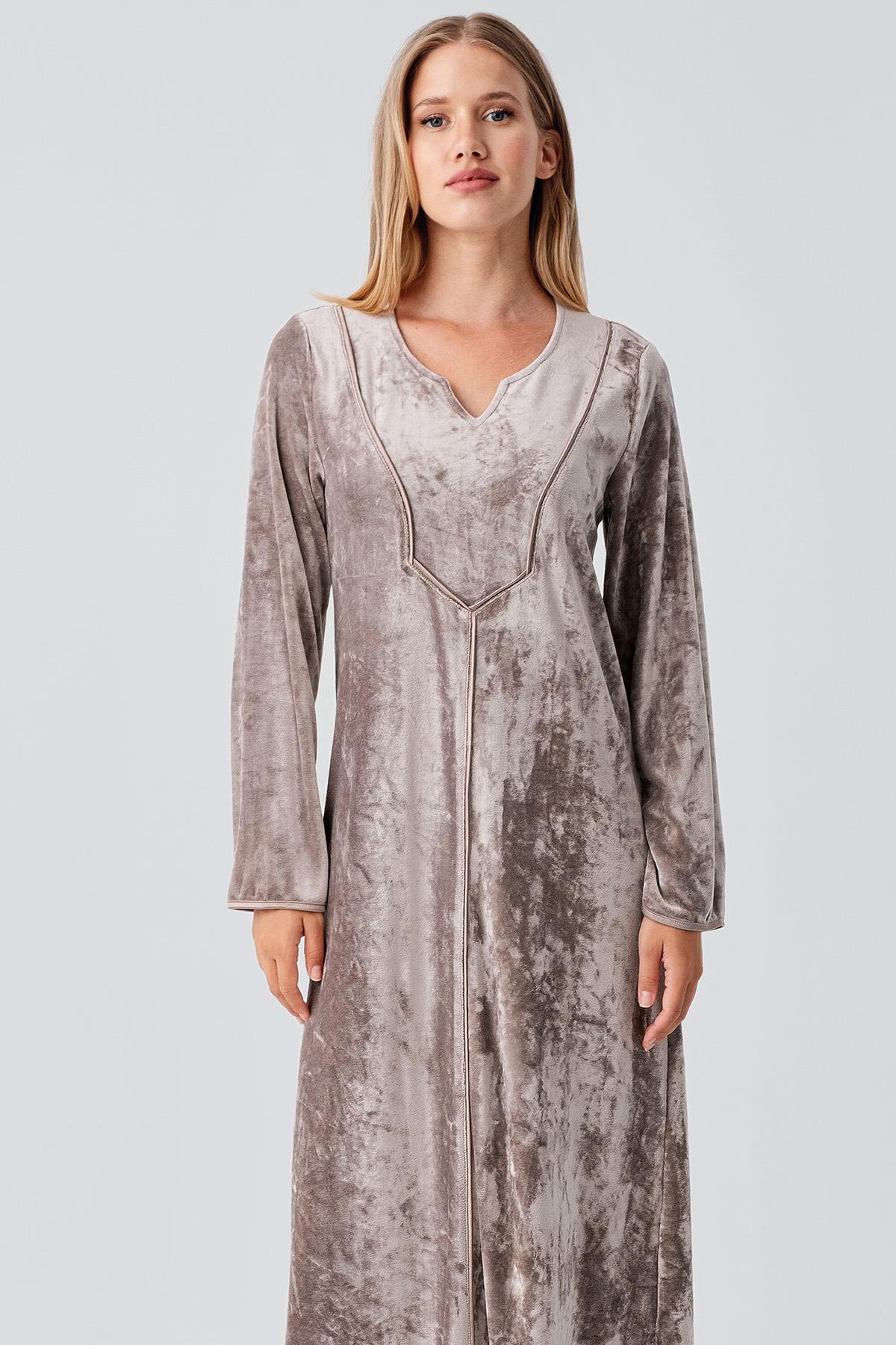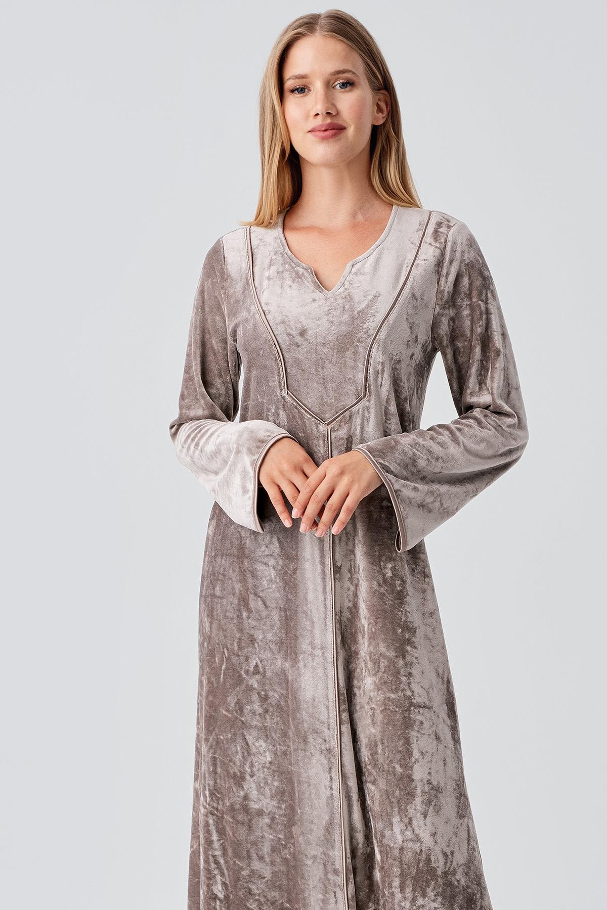 Uzun Kollu Esnek Kadife Viskoz Elbise 21117