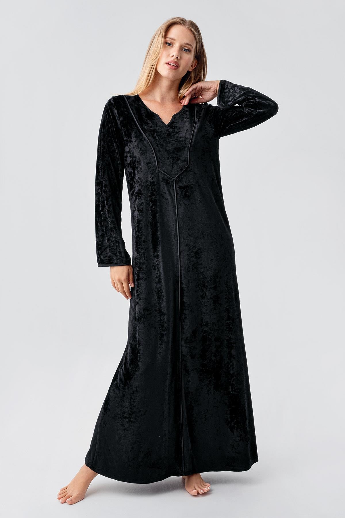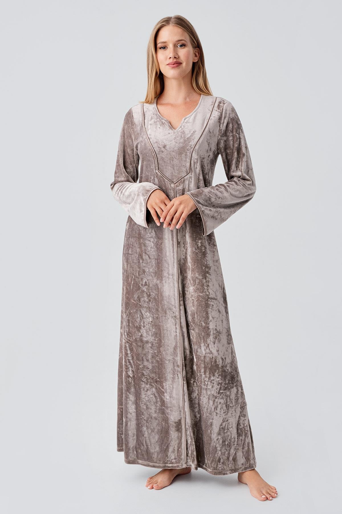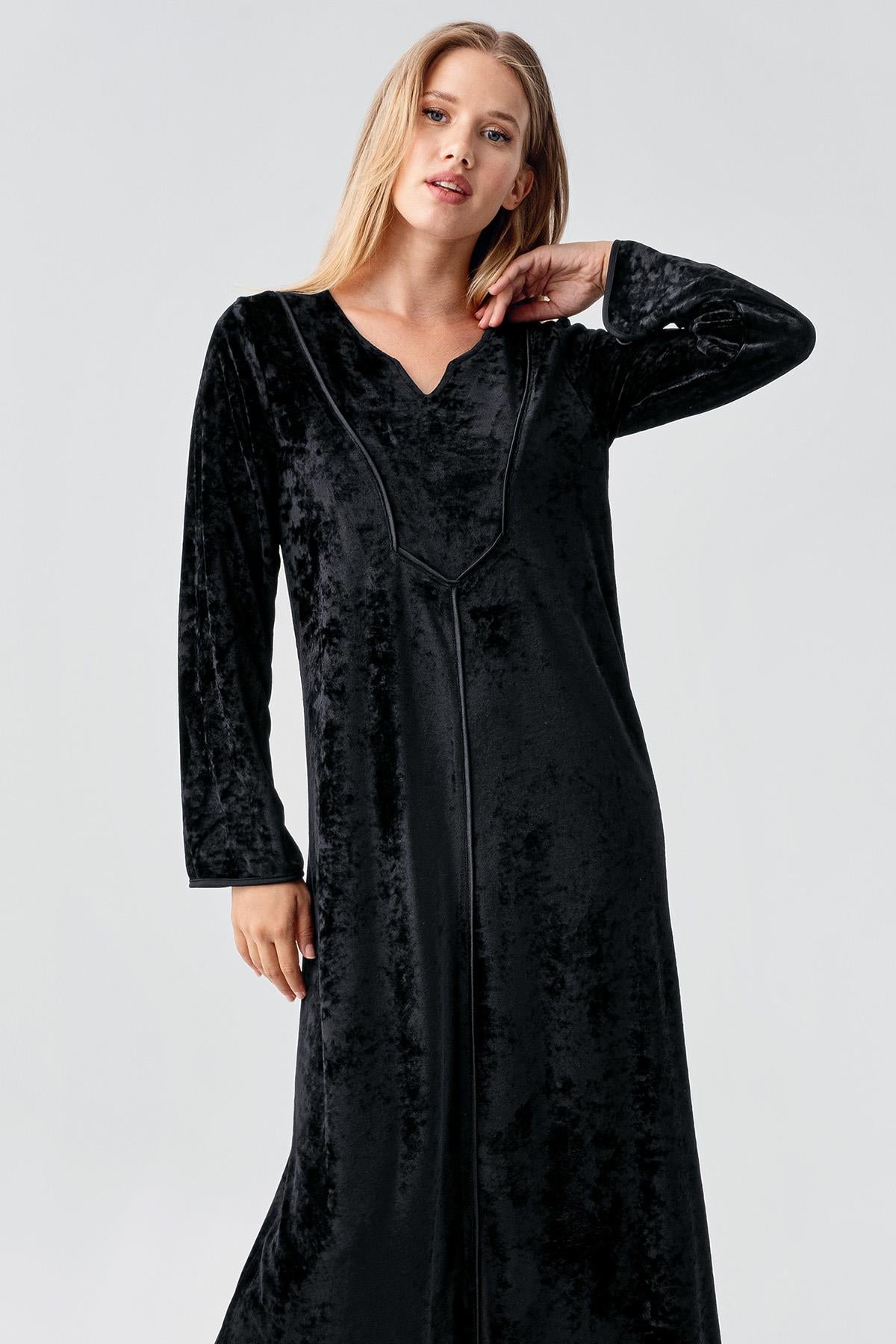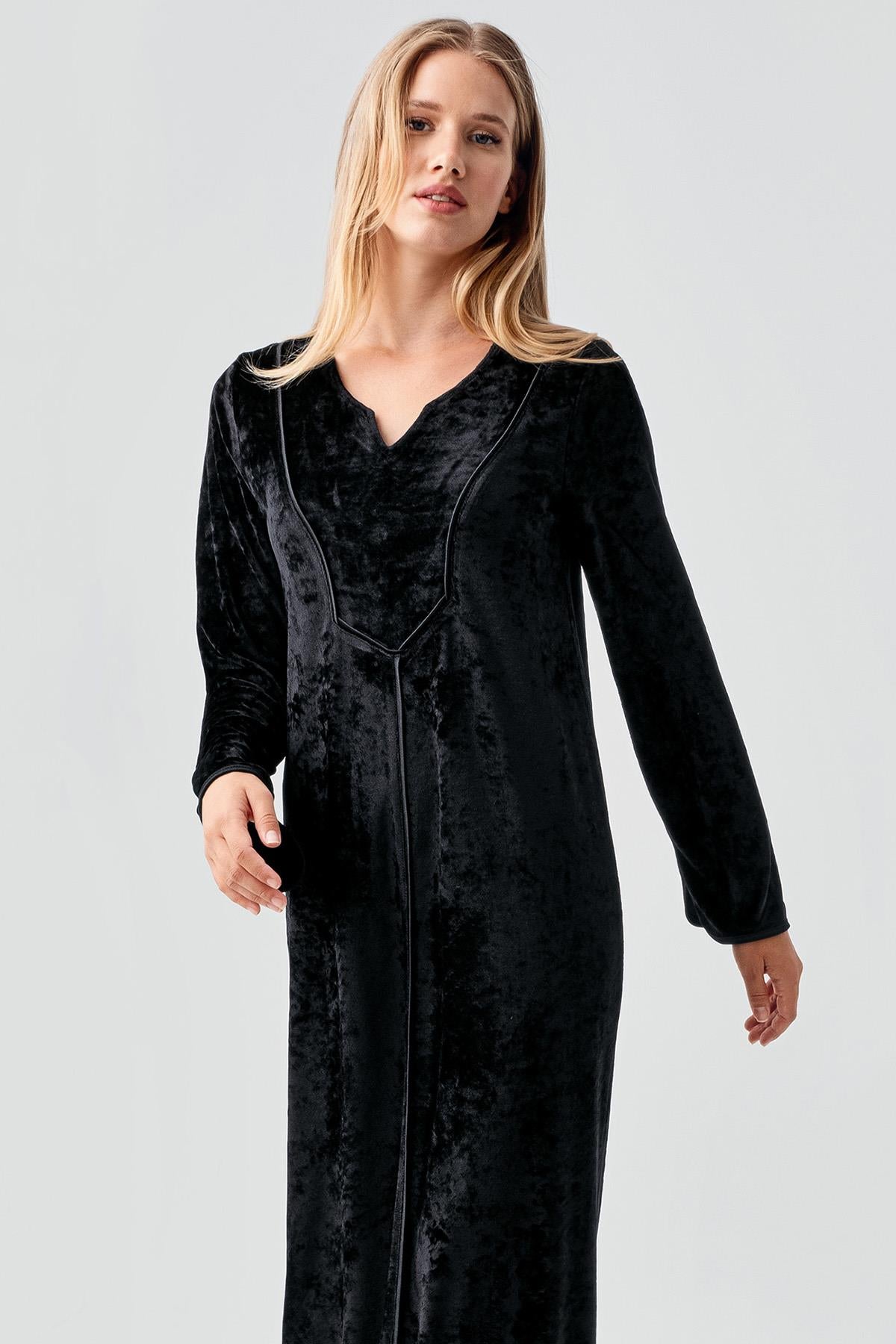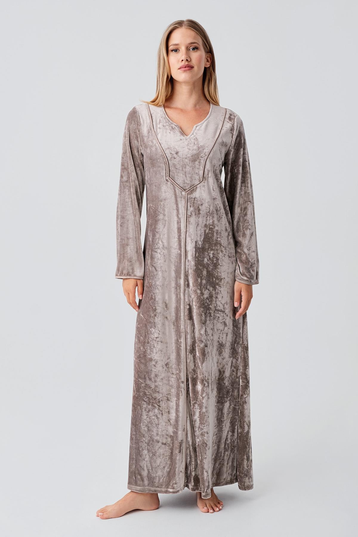Uzun Kollu Esnek Kadife Viskoz Elbise 21117