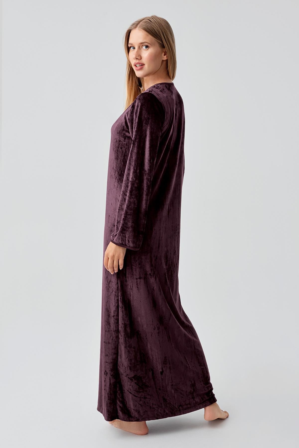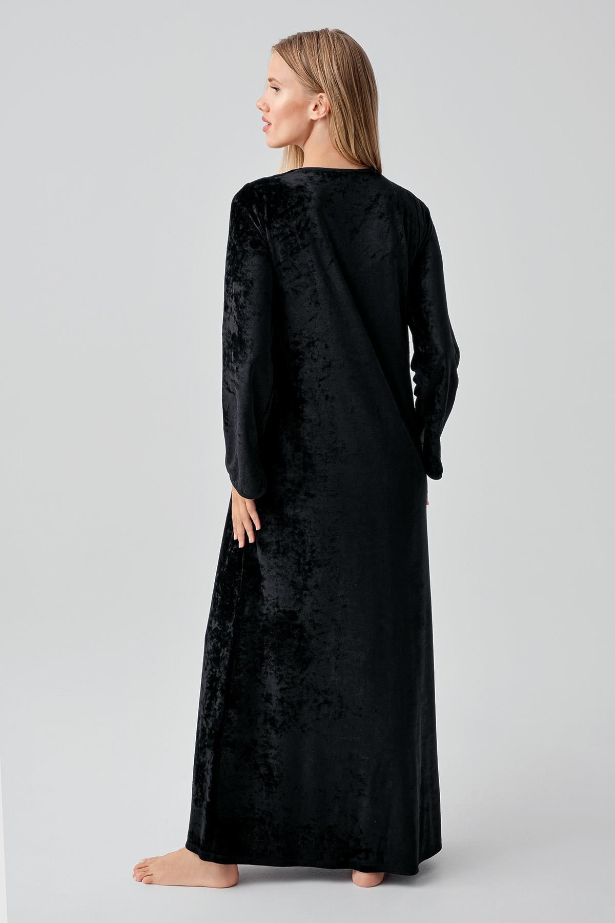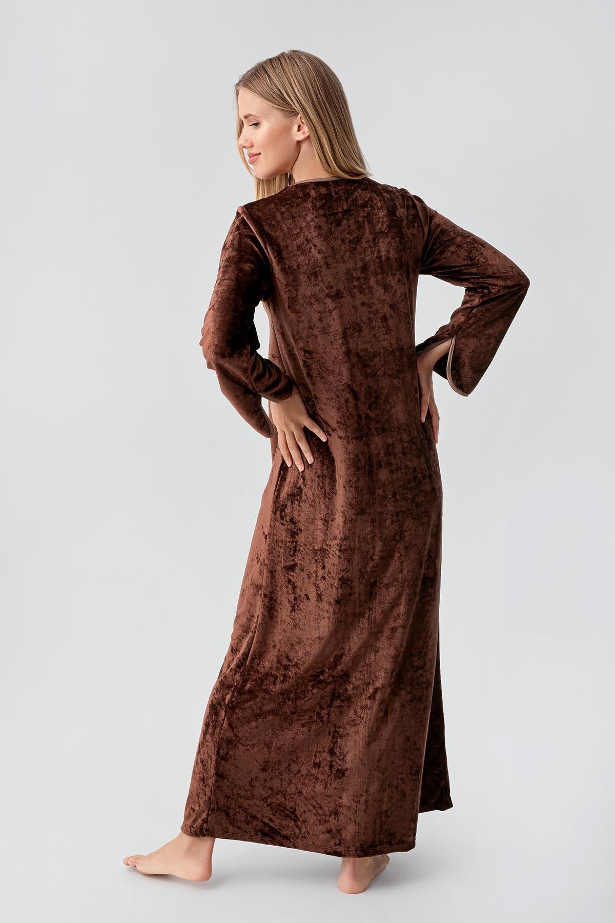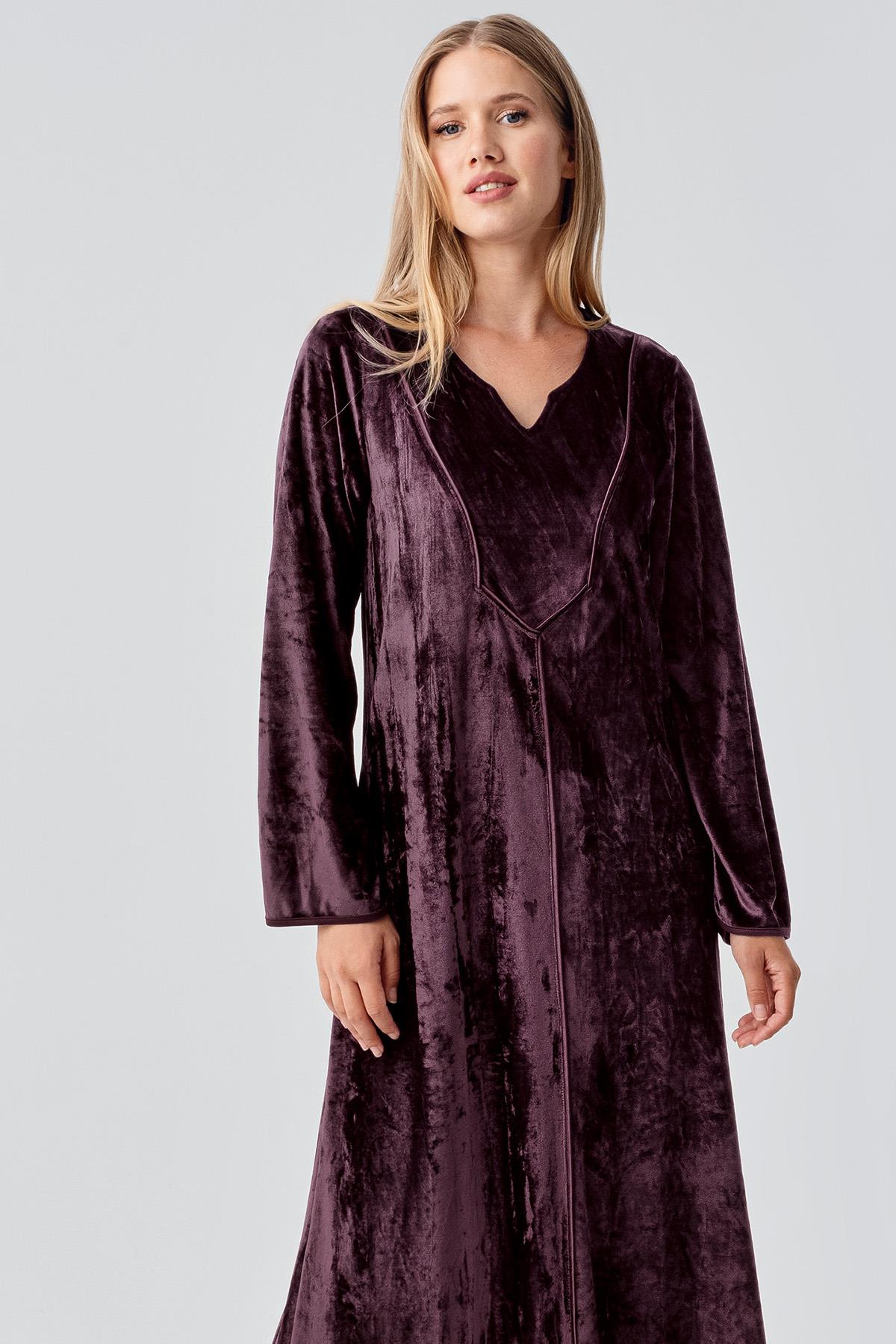 Uzun Kollu Esnek Kadife Viskoz Elbise 21117