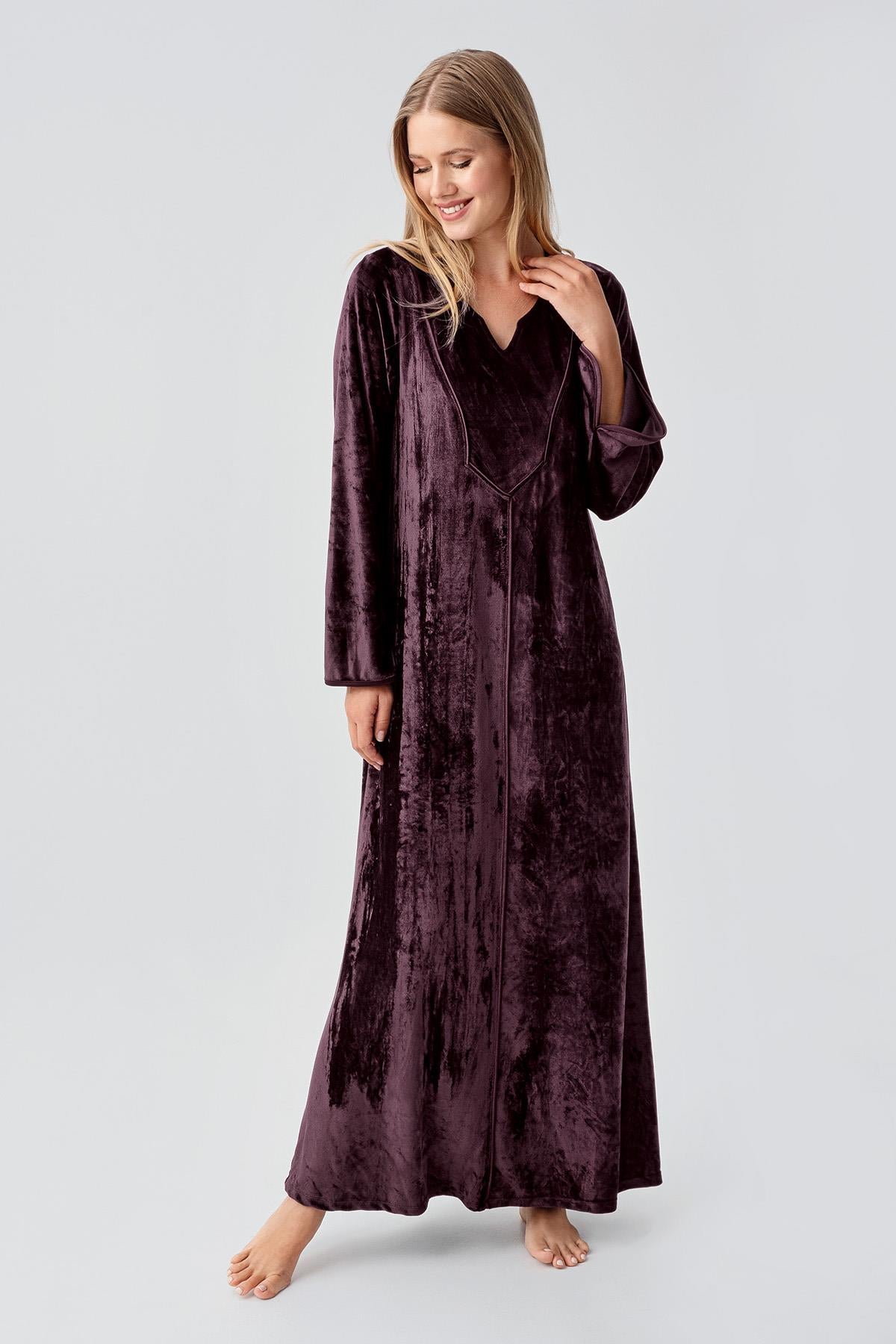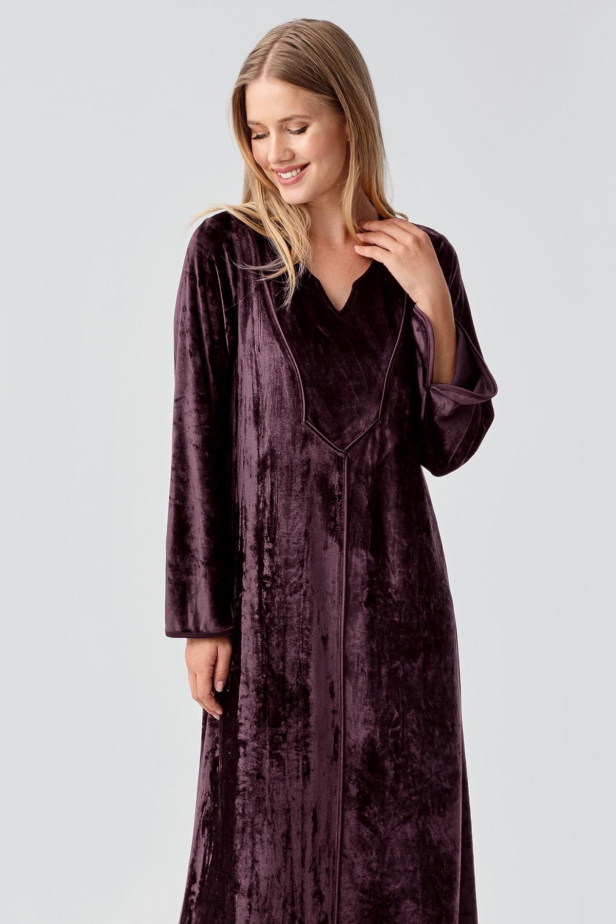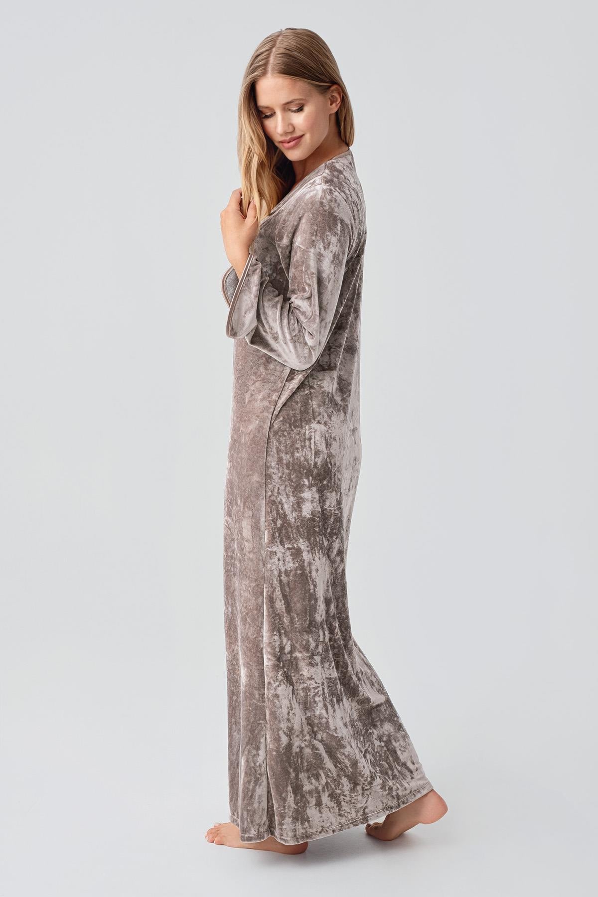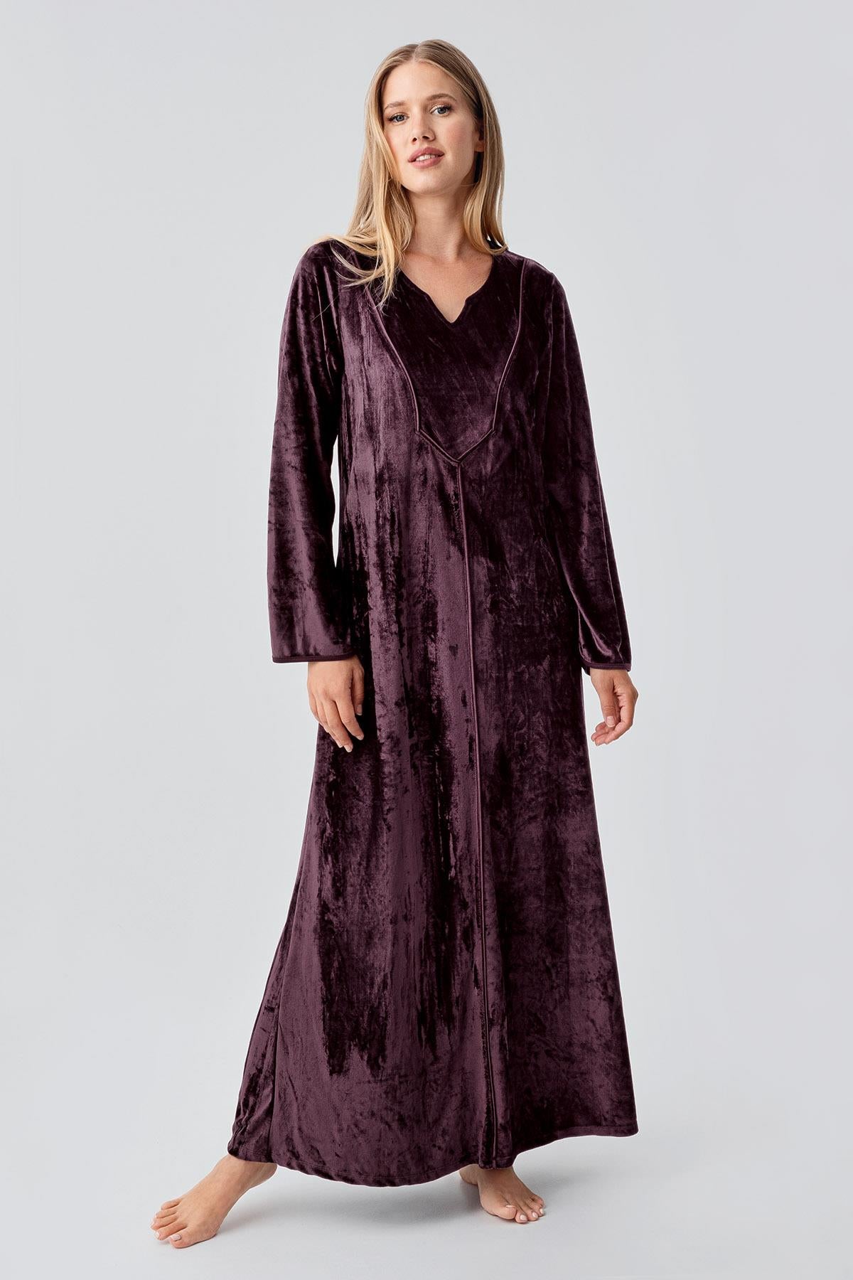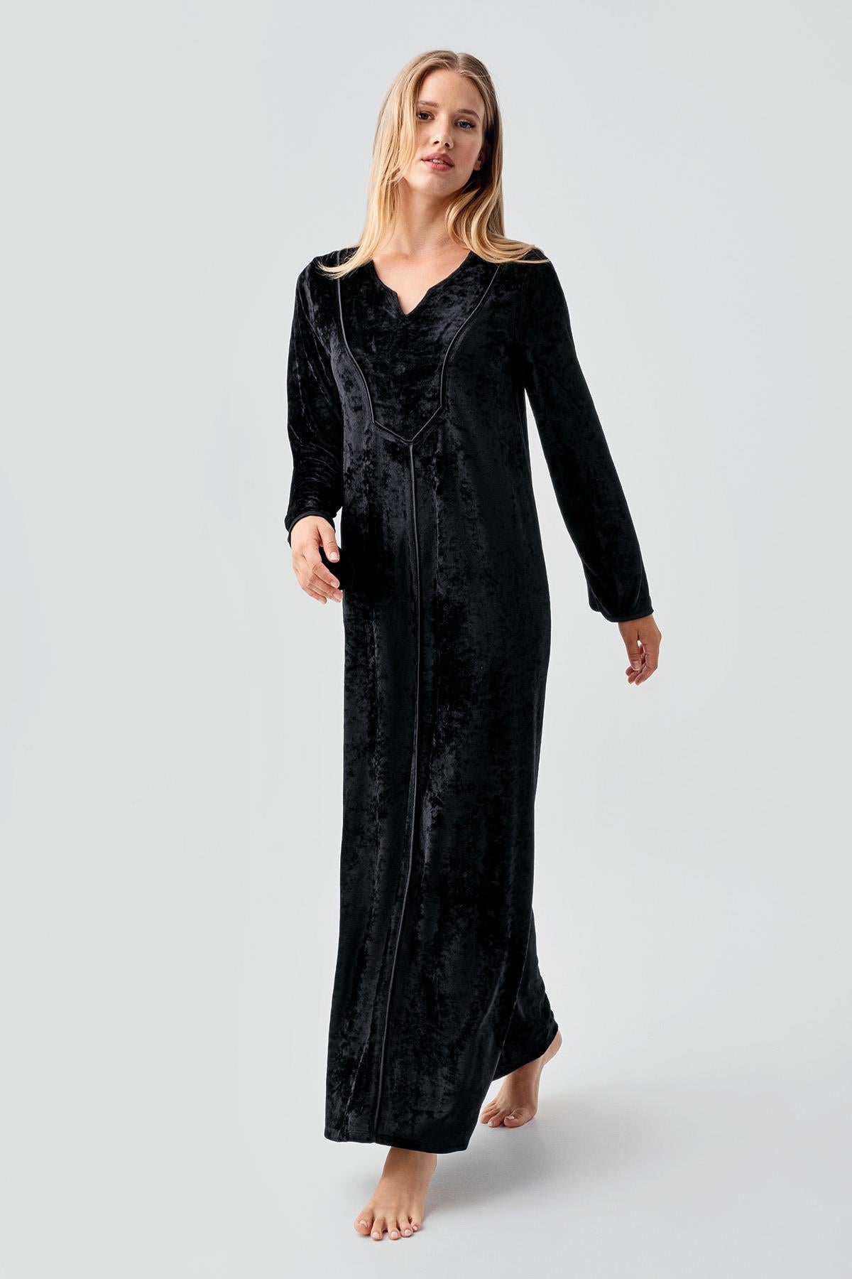 Uzun Kollu Esnek Kadife Viskoz Elbise 21117