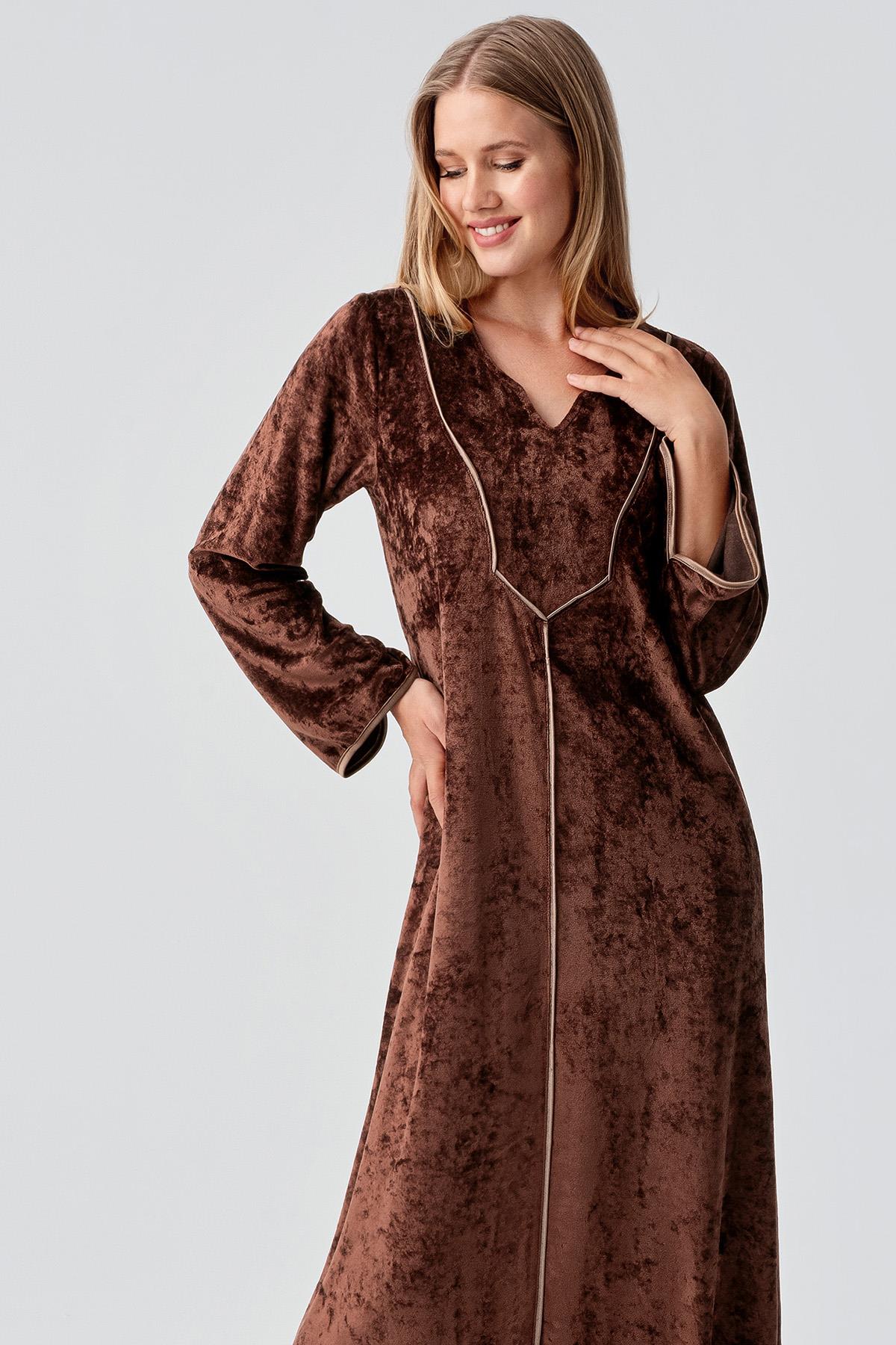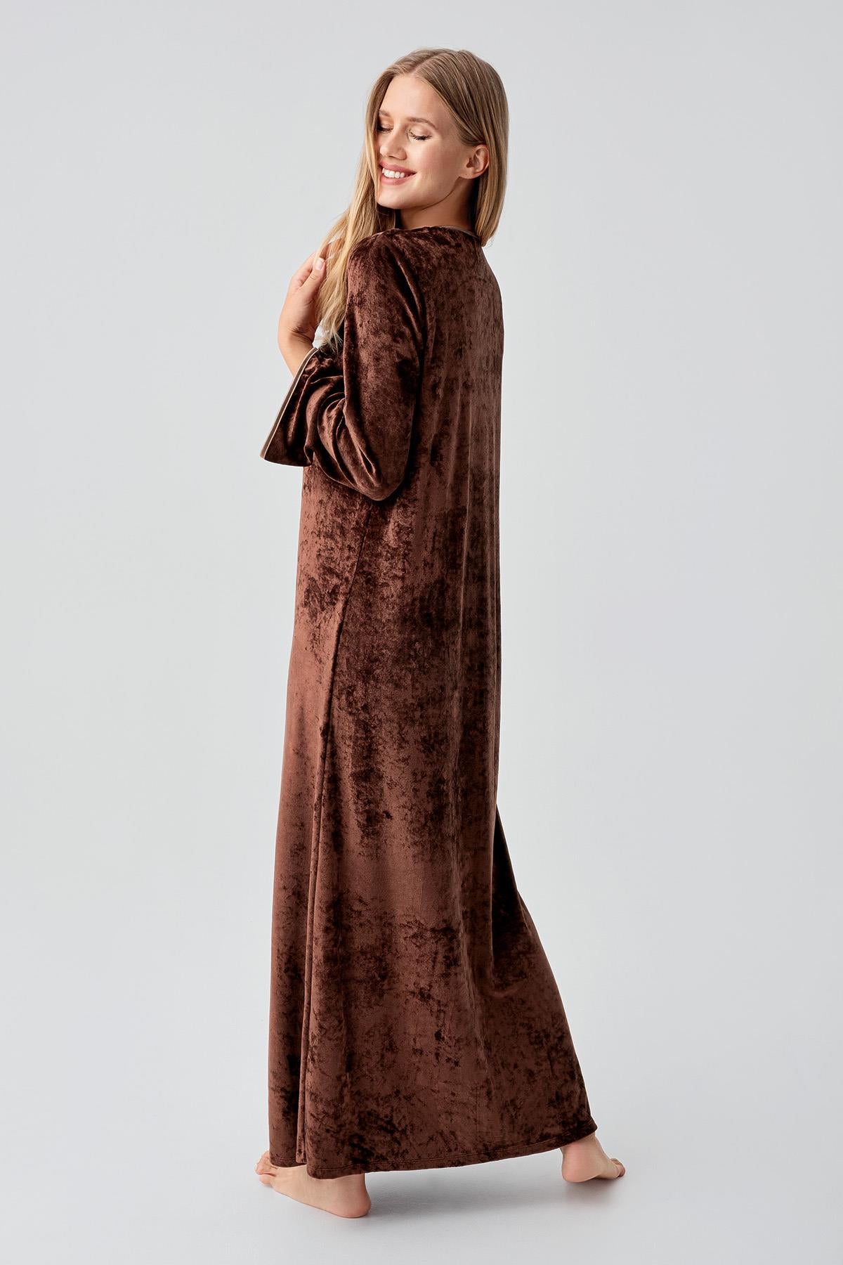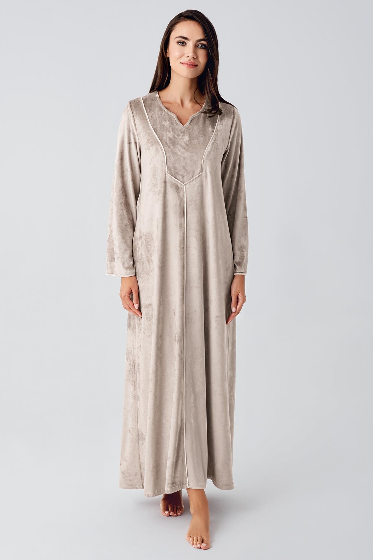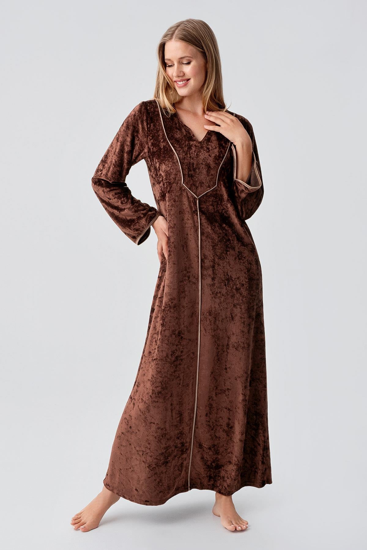 Uzun Kollu Esnek Kadife Viskoz Elbise 21117