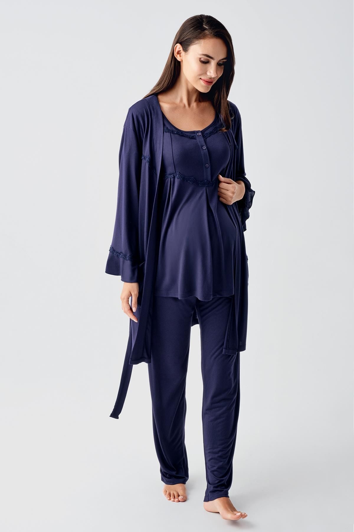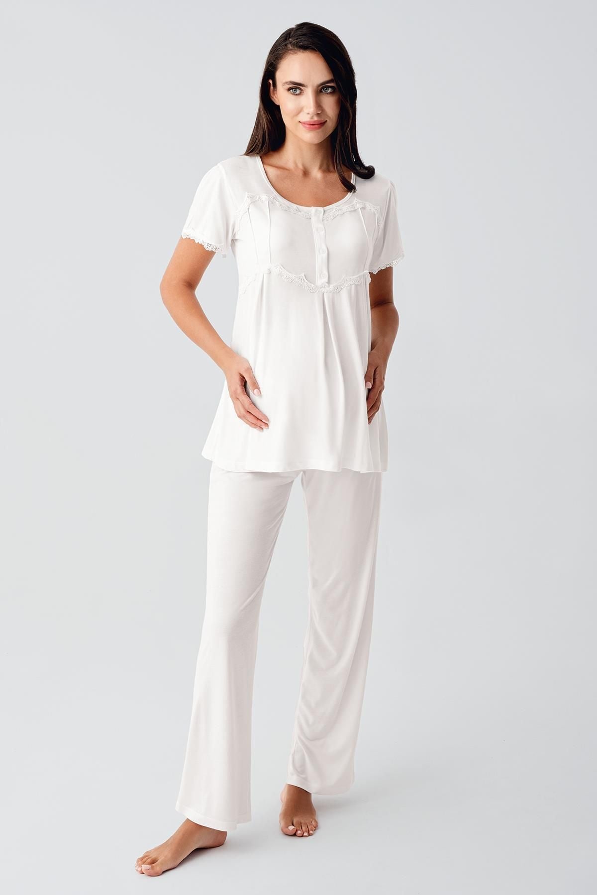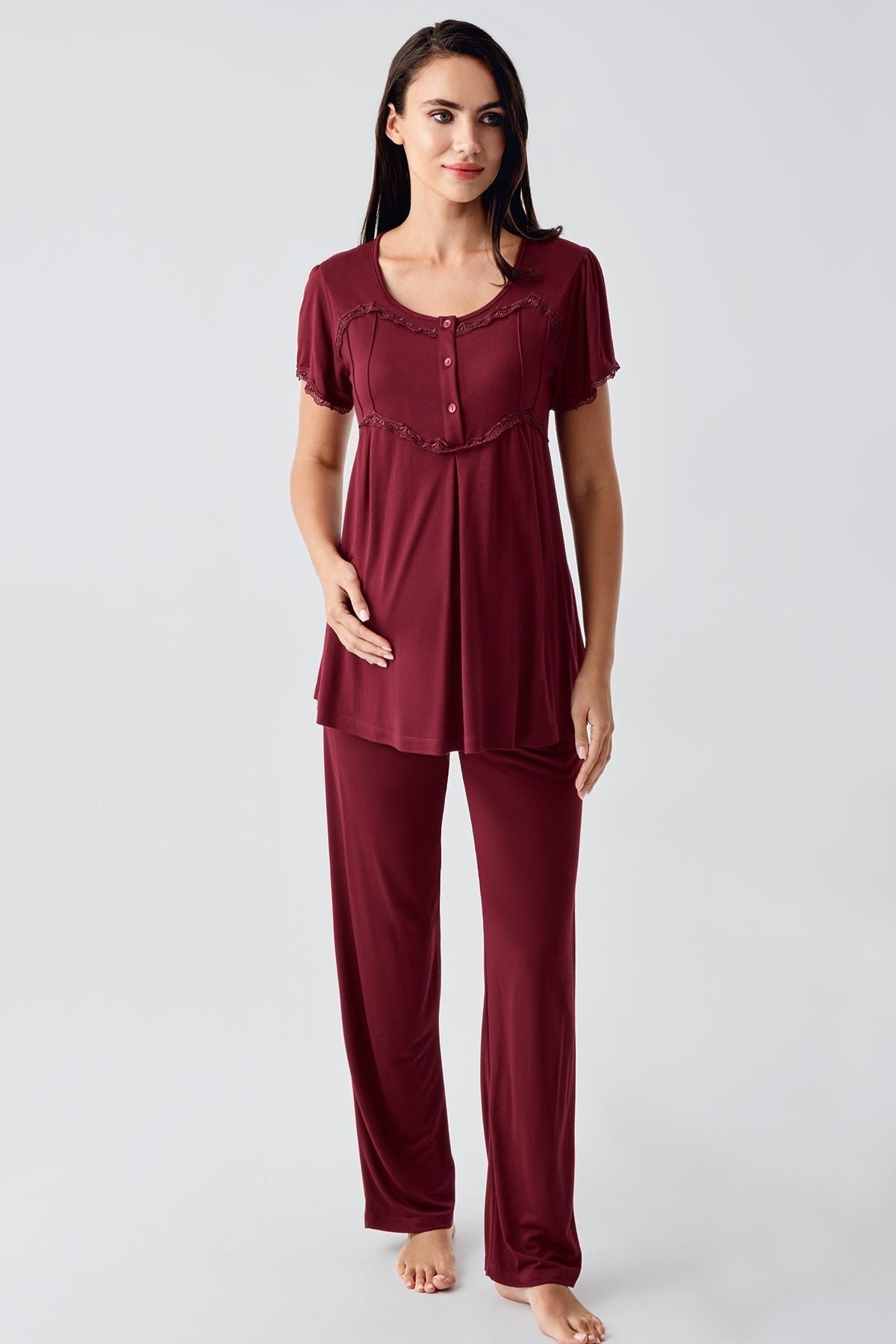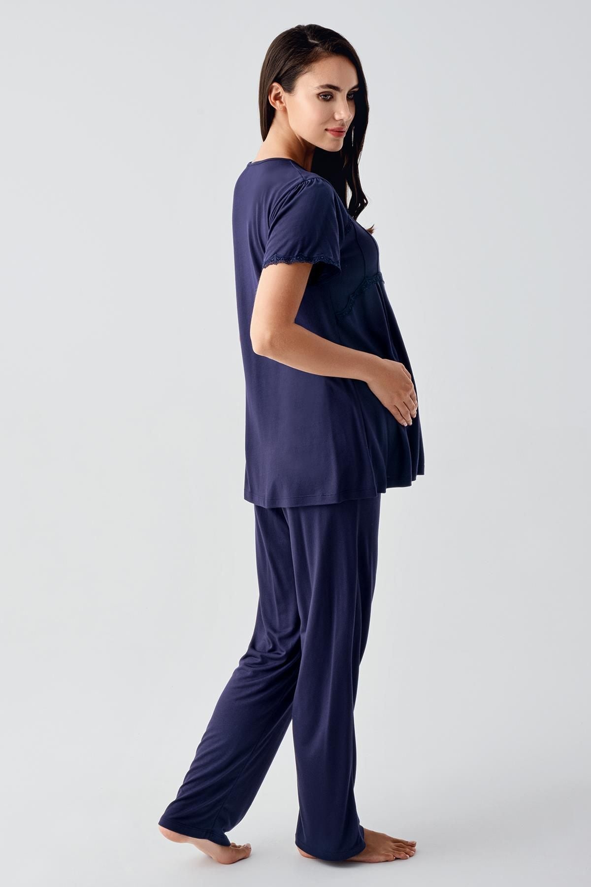 Kısa Kollu Esnek Viskoz Hamile Sabahlık Pijama Takım 23104