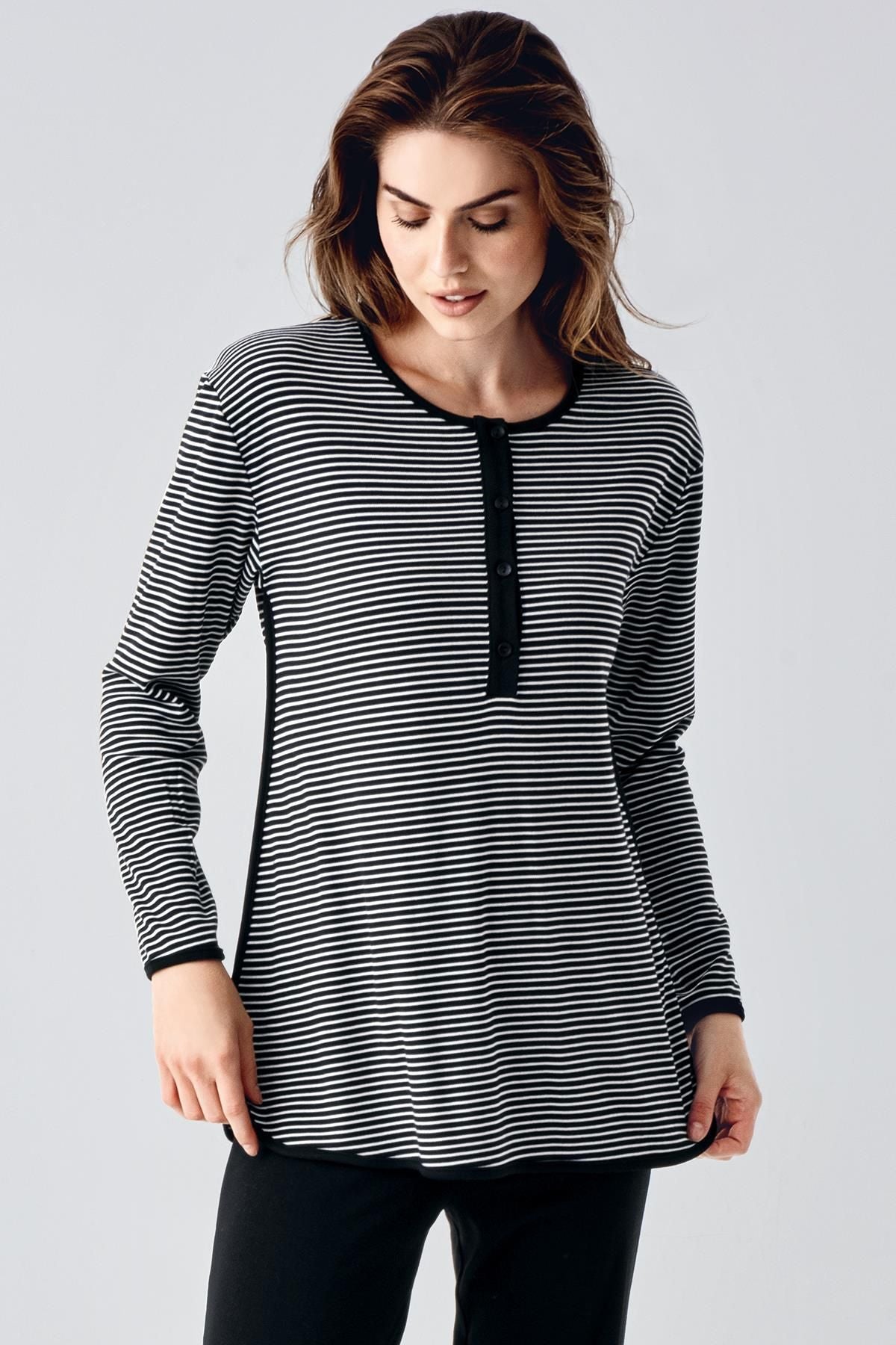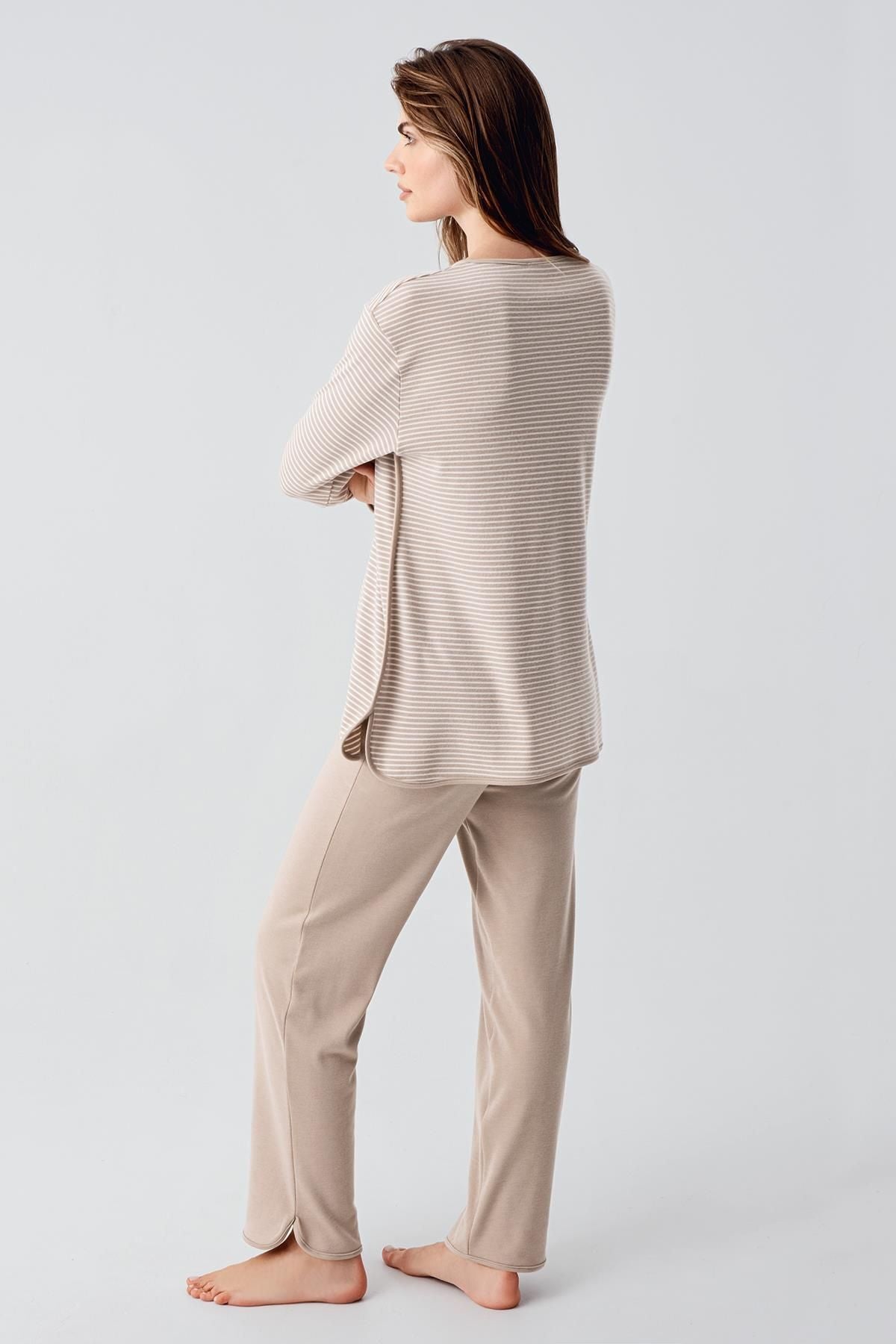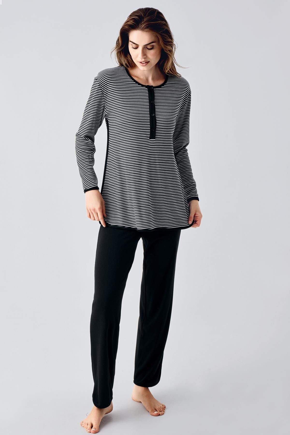 Uzun Kollu Düğmeli Esnek Şardonlu Viskoz Hamile Pijama Takım 22103