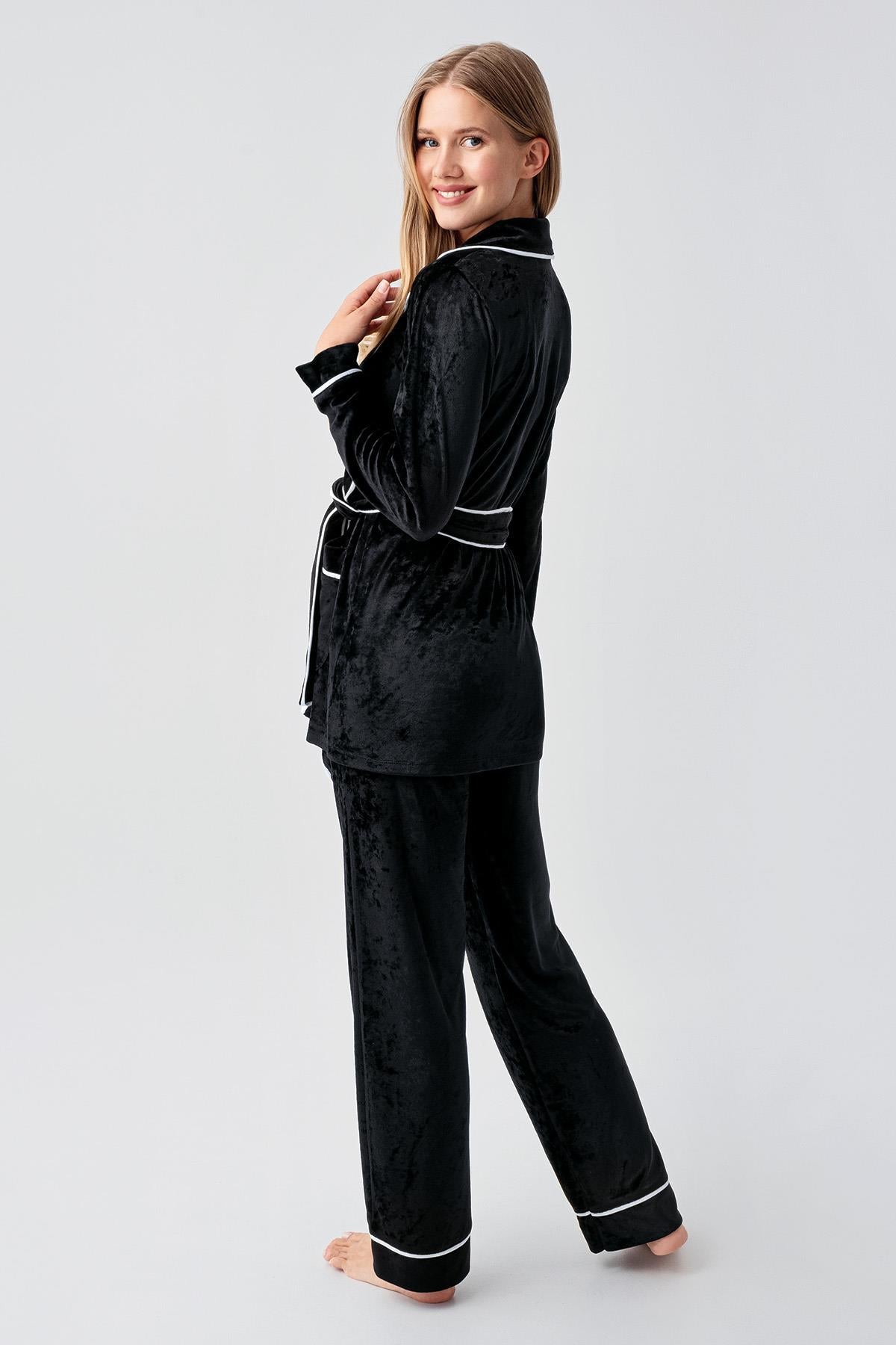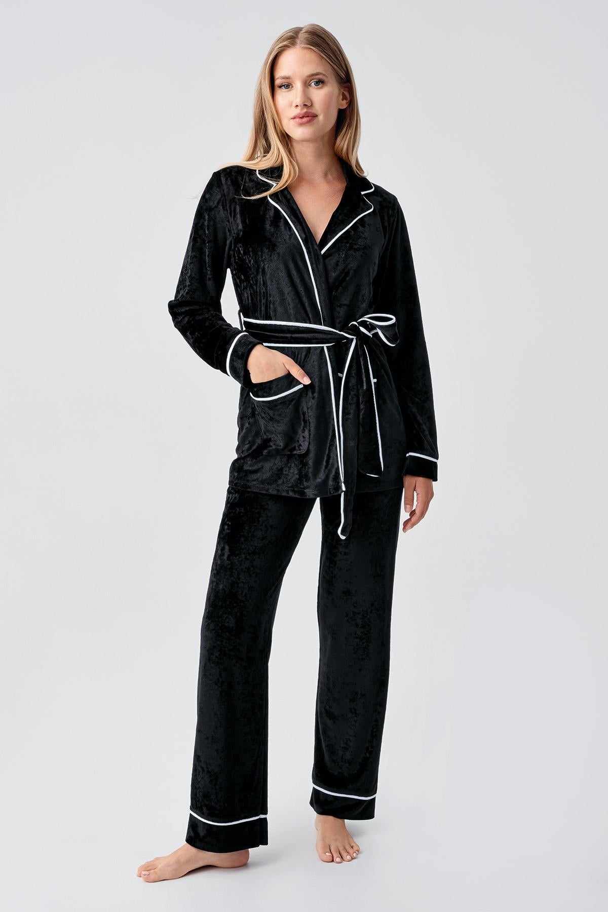 Uzun Kollu Kimono Kadife Esnek Viskoz Pijama Takım
