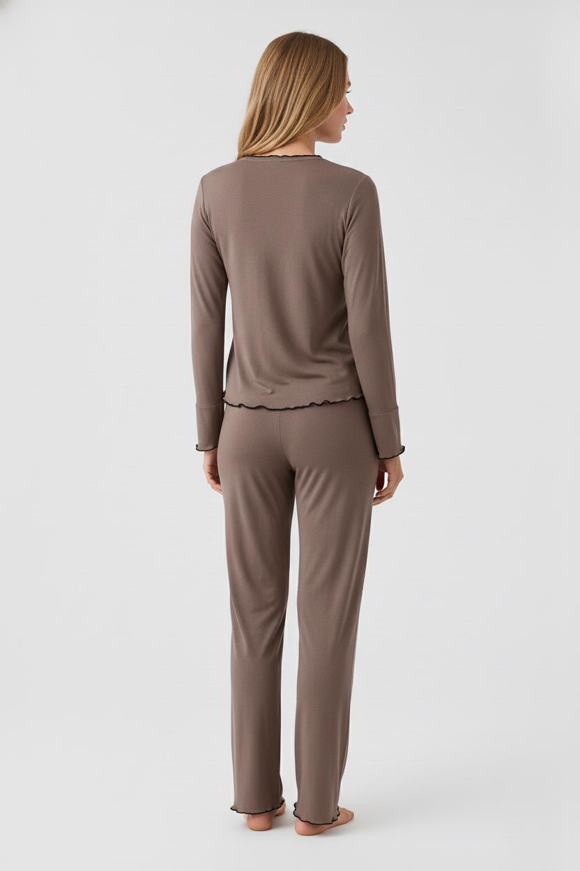 Uzun Kollu Kurdele Fiyonk Detaylı Esnek Viskoz Pijama Takım 18208