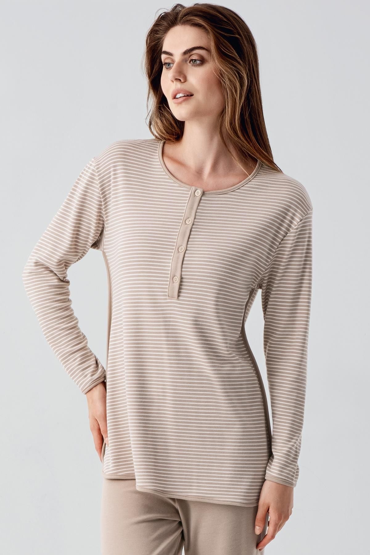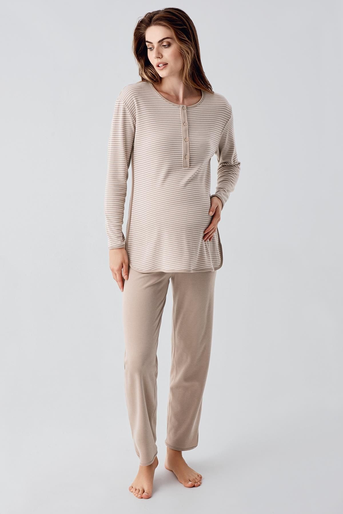 Long Sleeve Buttoned Flexible Raised Viscose Maternity Pajama Set 22103