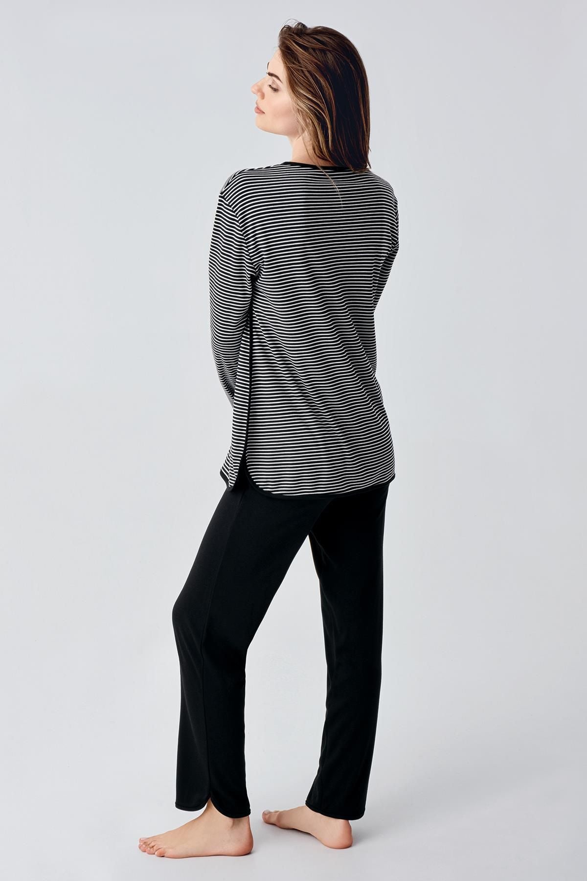 Features: The fabric is soft and comfortable. It has a wide mold. Purpose of Use: Suitable for both daily use and for pregnancy and post-pregnancy use. Package Content: The product package includes one top and one bottom pajamas. Fabric Content: 80% Viscose, 20% Polyester Model Measurements: Height: 1.77, Chest: 89, Waist: 63, Hip: 93 Product Measurements: Size: S | There is a 4-6 cm difference in circumference between sizes. Washing Instructions: Machine washable at 30 degrees. Do not wash by hand.